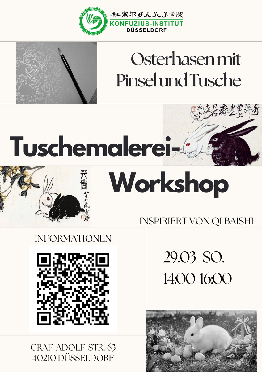 Dieser Kurs ist für Fortgeschrittene und Anfänger gedacht, die an der traditionellen chinesischen Malerei mit Tusche, Papier und Pinsel interessiert sind. Schritt für Schritt werden Sie angeleitet. Zur Vertiefung der Kenntnisse wird die Komposition mit Motiven wie Blumen, Vögel, Tiere und Landschaften weiter geübt. Doch auch eigene Kreativität fließt hier ein. Die Teilnehmenden erlernen im Kurs neben der Malerei auch die kalligraphischen Schriftzeichen, die mit den gemalten Motiven in Beziehung stehen.